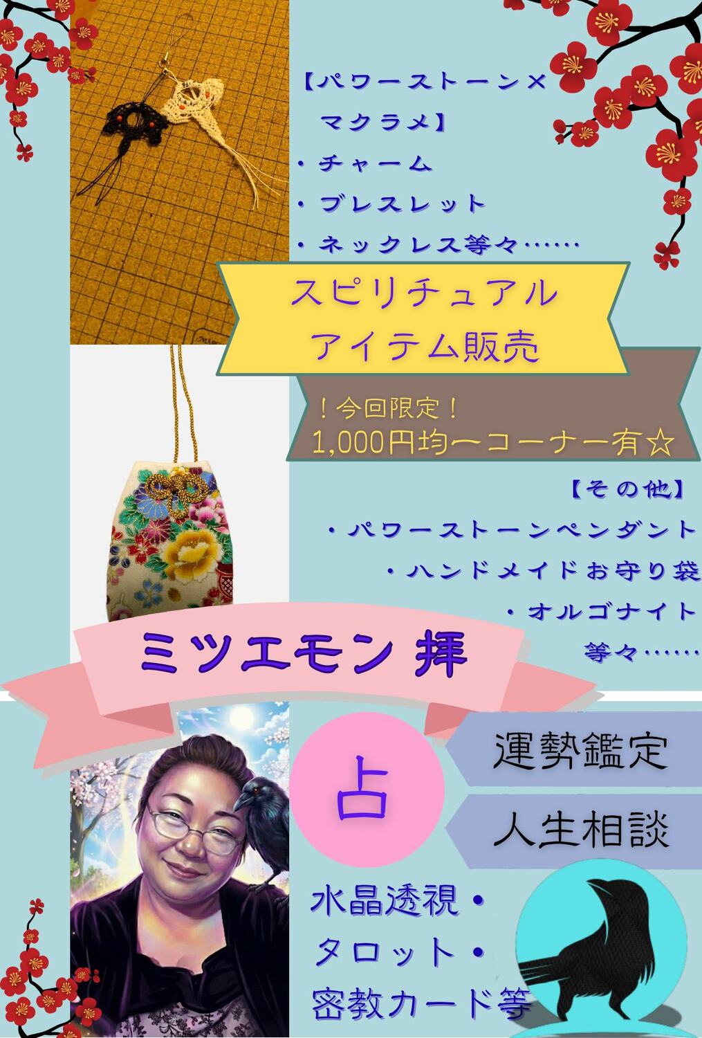 【ミツエモンのアトリエ・運勢鑑定やお悩み相談】開催 10:00~17:00