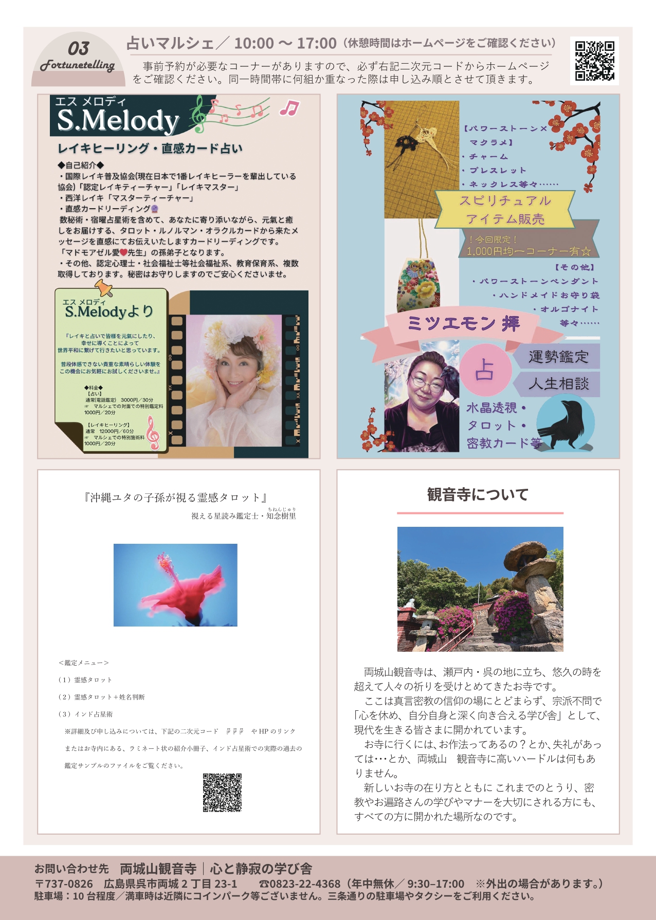 ※占いコーナーでは、同一時間帯で同じ方に何組かが重なった際は申し込み順とさせて頂き、該当時間が混雑している旨を折り返し連絡いたします。